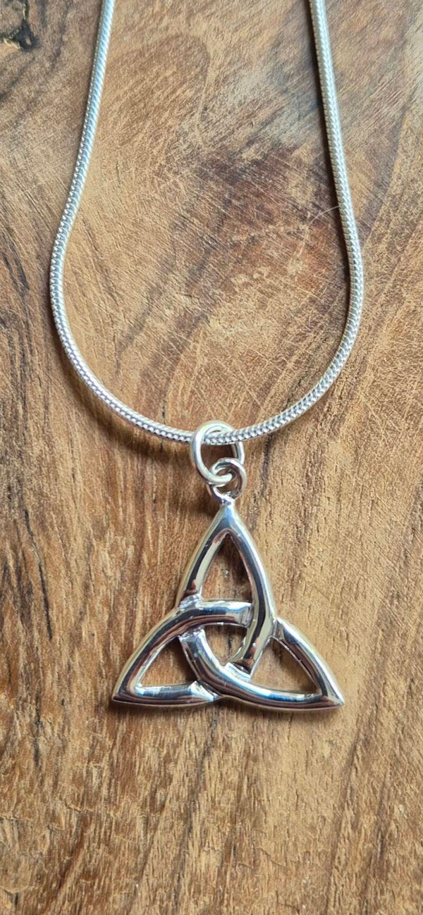 Een triqueta is een Keltische knoop bestaande uit 3 punten. Een Keltische knoop symboliseert reïncarnatie en eeuwige vernieuwing en geeft de drager bescherming en creativiteit.