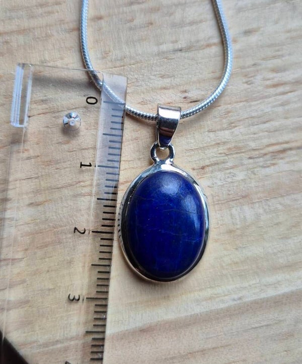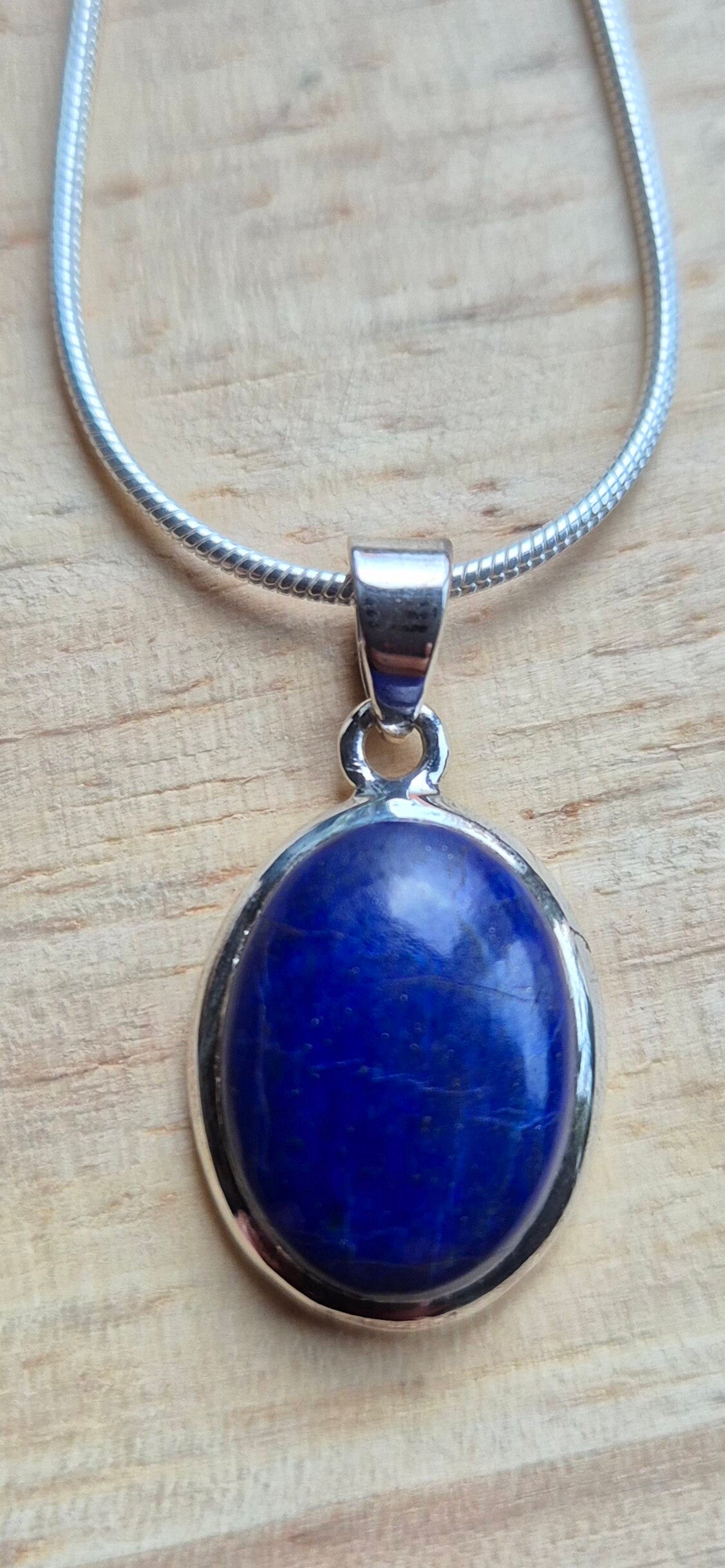 Ovale zilveren hanger met een mooi bolle Lapis Lazuli edelsteen.