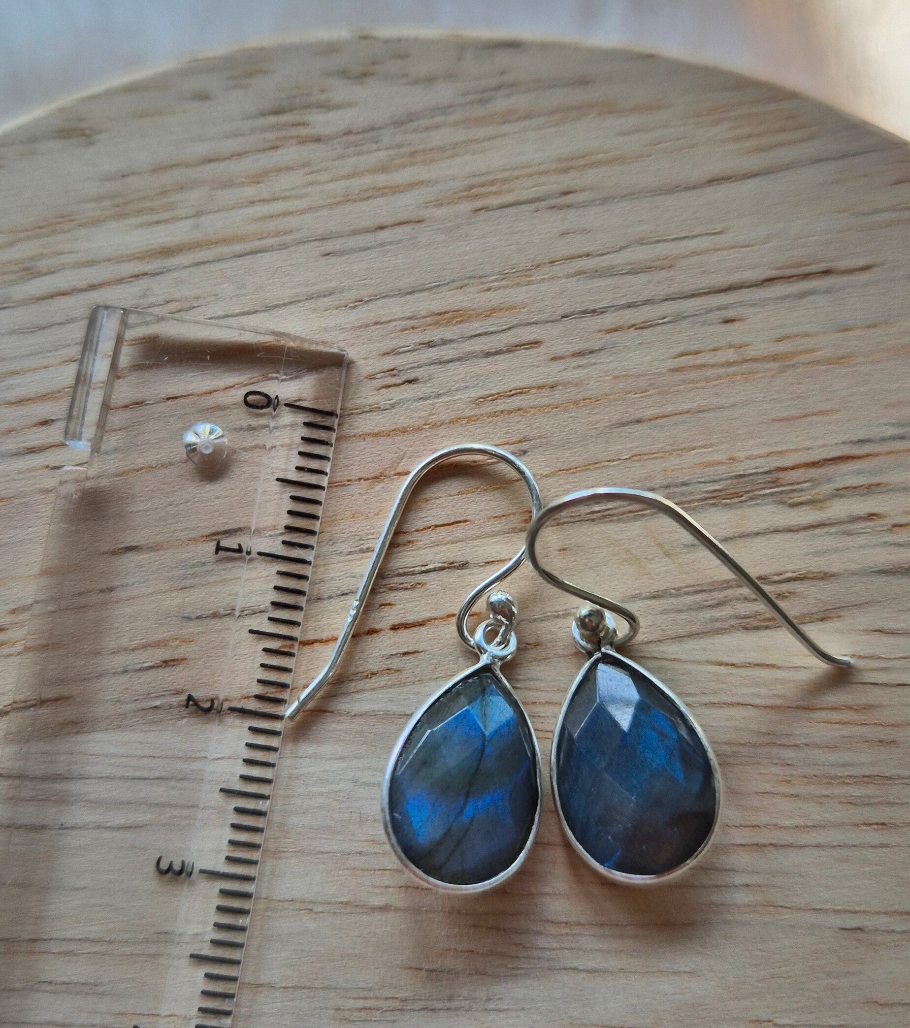 Deze oorbellen zijn gemaakt van echt zilver 925. De blauw/groene Labradoriet edelstenen zijn facet geslepen.