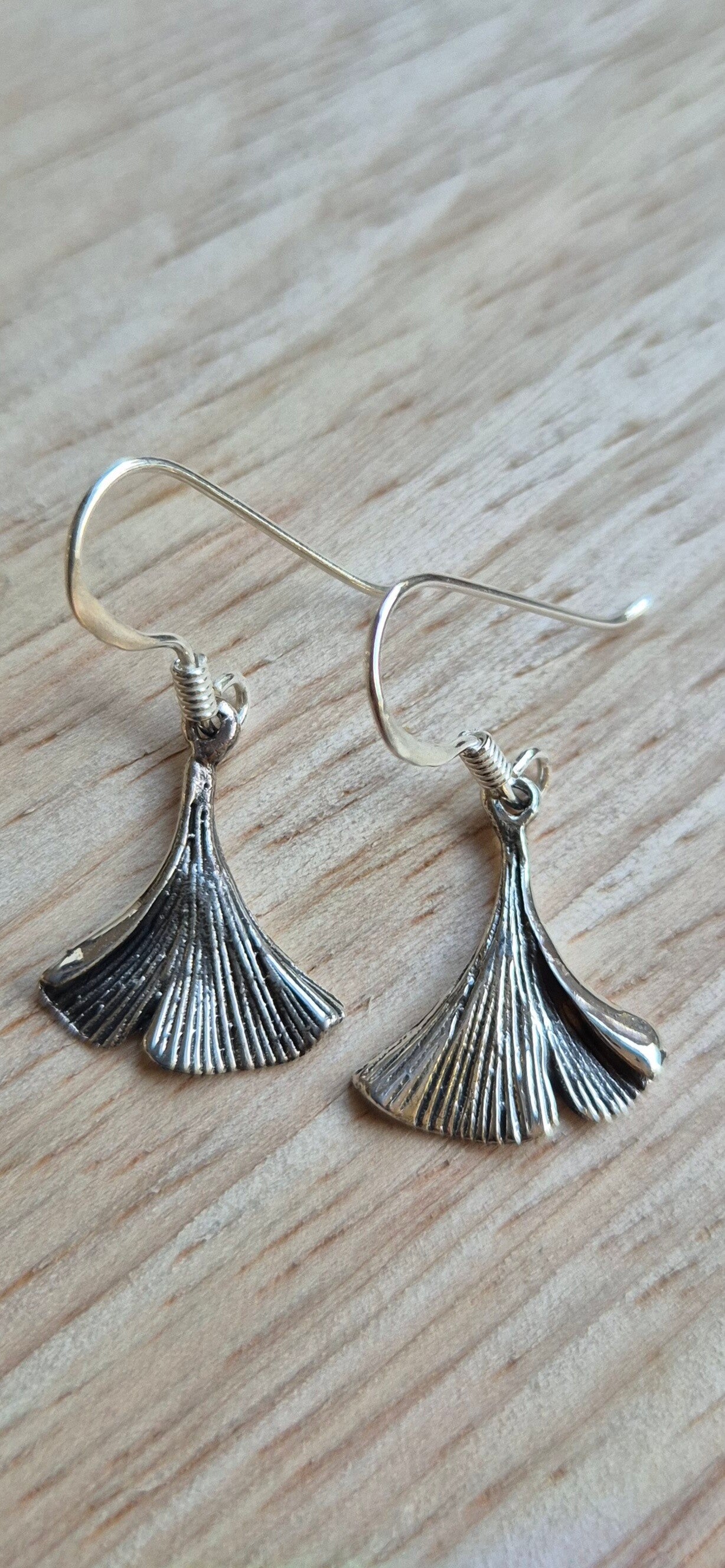 Bijzondere oorhangers in de vorm van het blad van de Gingko Biloba boom. De oorhangers zijn zo'n 30 mm lang, inclusief het haakje.