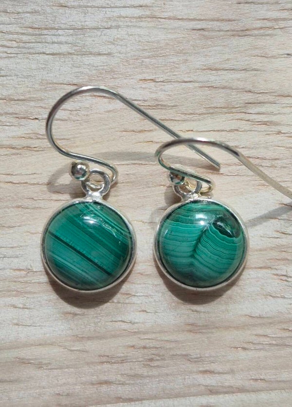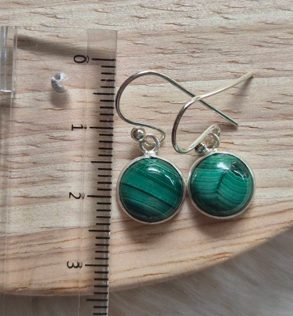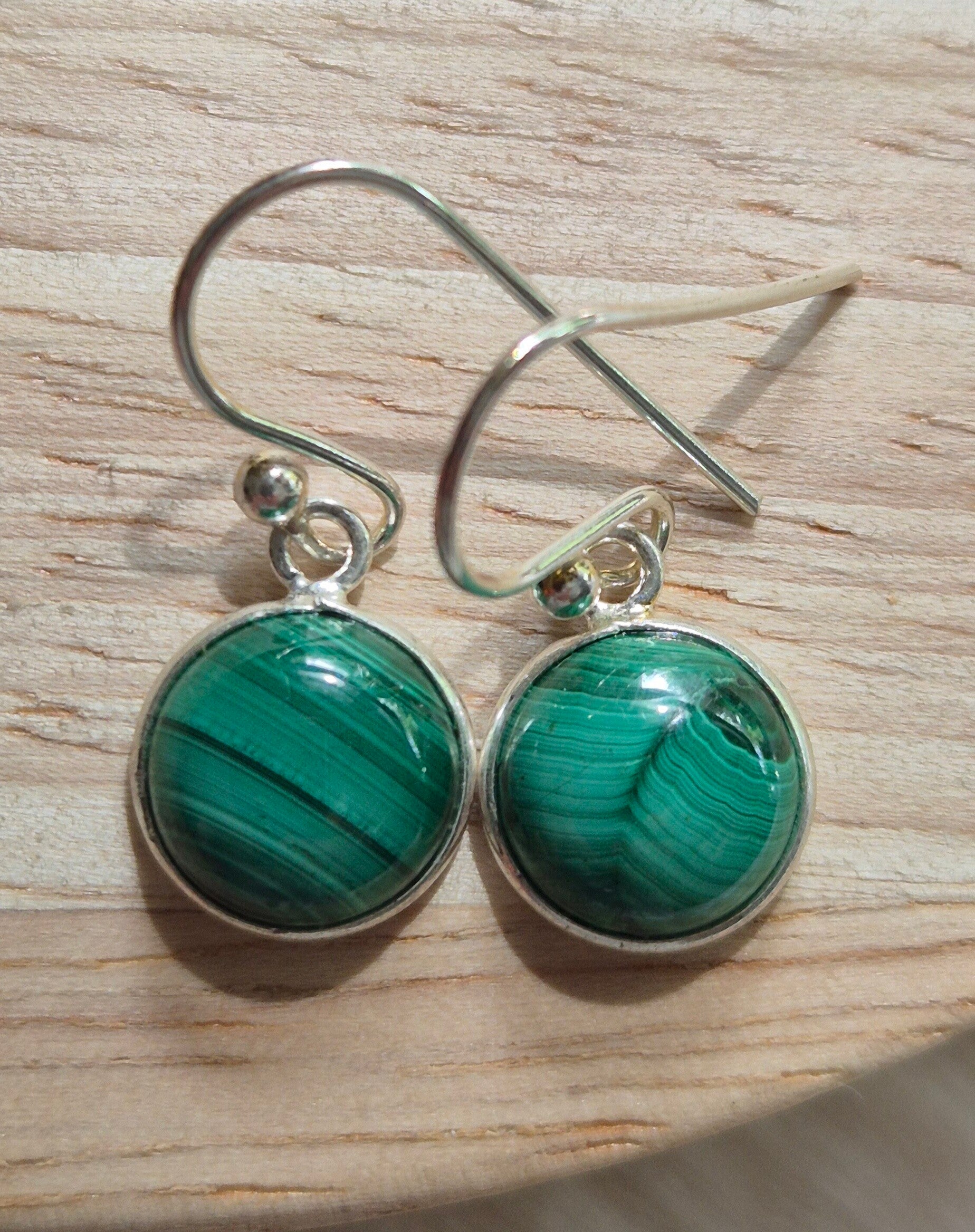 Echt zilveren 925 oorbellen met groene Malachiet edelsteen.
